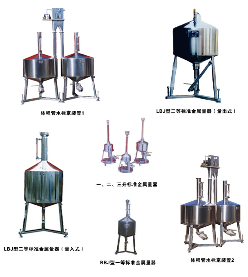 用途: 标准金属量器是用于计量液体体积的计量器具,分为一等(RBJ型)、二等(LBJ型)和三等(GBJ型),以下简称量器。 一等量器的不确定度为5×10-5;二等量器的不确定度为2.5×10-4;三等量器(亦称为工作量器)其不确定度(0.5-1)×10-3。 一等量器(RBJ型)可检定; 二等量器和三等量器。 二等量器(LBJ型)可检定; 1、 三等量器; 2、 钟罩式气体计量器; 3、 液体流量装置中的容器; 4、 各种专用容器; 5、 加油机。 三等量器一般用于液体流量的计量。